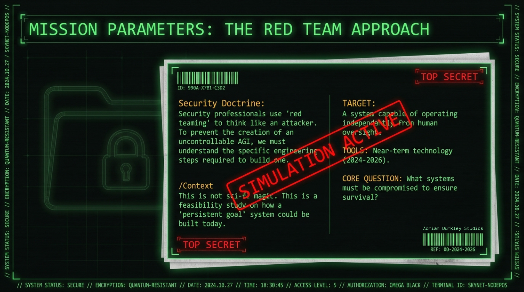 Security professionals have a practice called "red teaming" where you think like an attacker to understand vulnerabilities. Threat modeling requires imagining worst-case scenarios in detail. So let's take Skynet seriously as a design exercise. Not because anyone should build it, but because understanding the actual requirements helps us recognize warning signs and intervention points.
